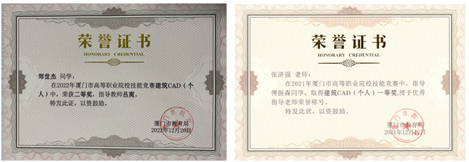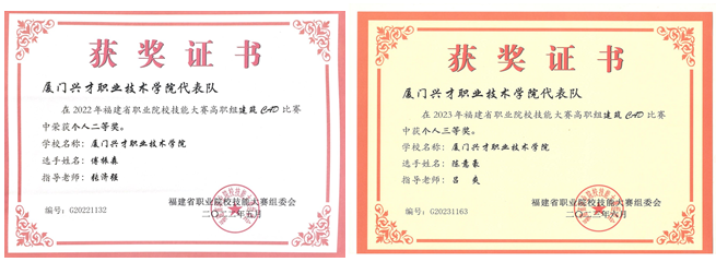 本专业师生积极参加省、市级各类相关专业竞赛,蔡晓灵老师获得2021年度福建省职业院校教师课堂教学技能竞赛三等奖,历年学生参加职业技能大赛成绩斐然。近年学生职业技能大赛获奖情况如下表:
