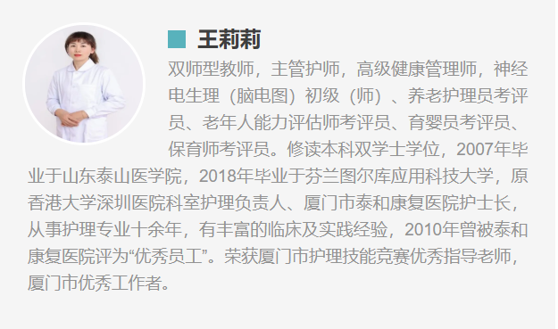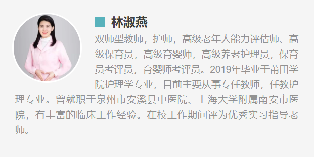 我们拥有一支具有护理、健康管理相关专业背景、专业理论功底扎实、临床经验丰富的专兼职师资队伍。他们分别来自广州第一军医大学、北京大学、湖北中医药大学、广西中医药大学、福建医科大学等知名学府,专业涵盖护理专业、药学专业、临床医学专业等多门学科。他们工作勤恳,爱岗敬业,活跃在医疗卫生,教育教学和科研一线,在专业课程教学、实习实训指导和职业发展规划指导等方面提供强有力的支撑,是我们人生路上的指明灯。