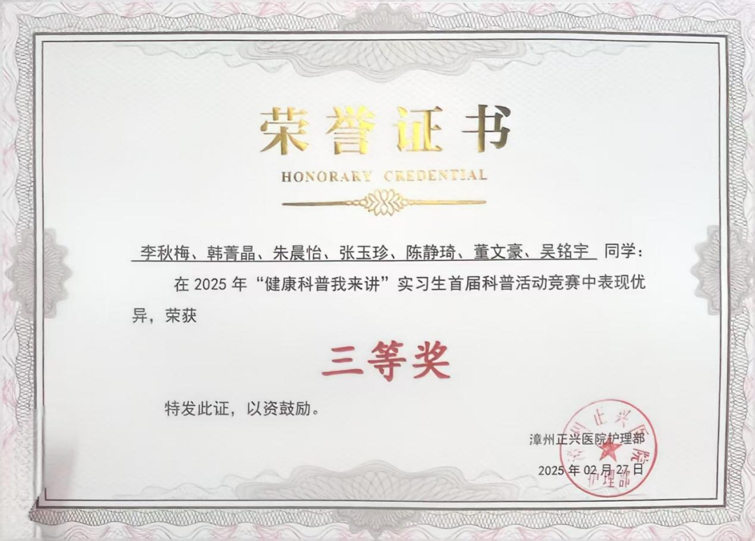 在各实习医院的临床历练中,我院学子勤学笃行、奋勇争先,凭借扎实专业功底在护理技能比赛、讲课比赛中屡创佳绩,以责任担当获评优秀实习生等荣誉,更荣获福建省南丁格尔奖学金。一张张荣誉照片定格成长高光,尽显护理学子的青春风采与医者素养,亦是校企协同育人结出的累累硕果。