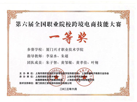 2025年10月 厦门市“互联网+国际经济与贸易”大赛团体二等奖