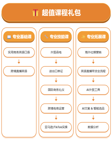 课程设置紧贴企业实际岗位需求,涵盖从传统外贸到数字营销的全链路: