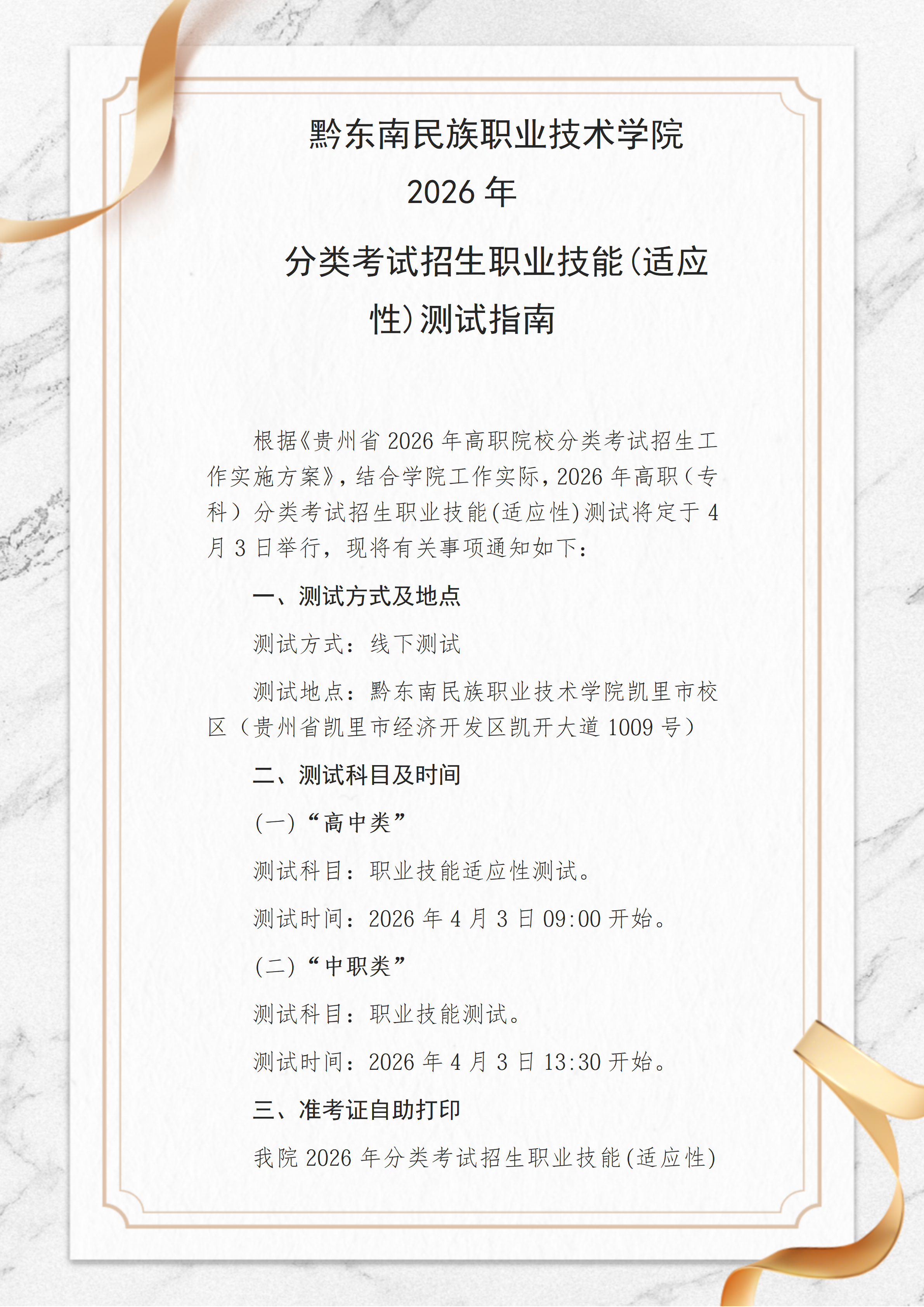 2026年分类考试招生技能测试指南