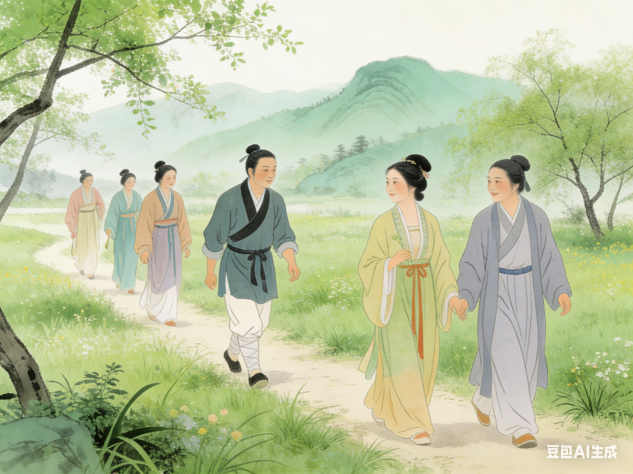 踏青:又叫探春、寻春,此时春光明媚、草木吐绿,正是人们春游的好时候,感受春日生机。