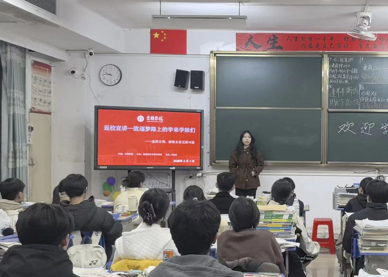 当介绍到车辆工程等专业的亮眼成绩、先进的实训条件以及稳定优质的就业率时,我看到了他们眼中的向往与期待;当分享我的高中经历、解答他们的困惑时,我真切感受到了分享的意义 —— 这不仅是一份升学参考,更是为他们打开一扇通往理想大学的大门。这次宣讲,是我回馈母校培育的一份心意,也是我践行 “情系吉利” 的一次实际行动。未来,我将继续深耕专业、努力成长。