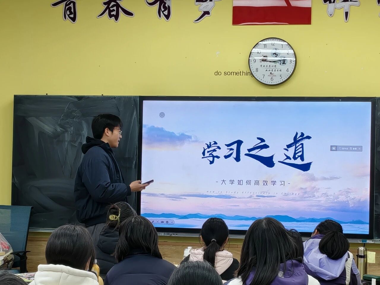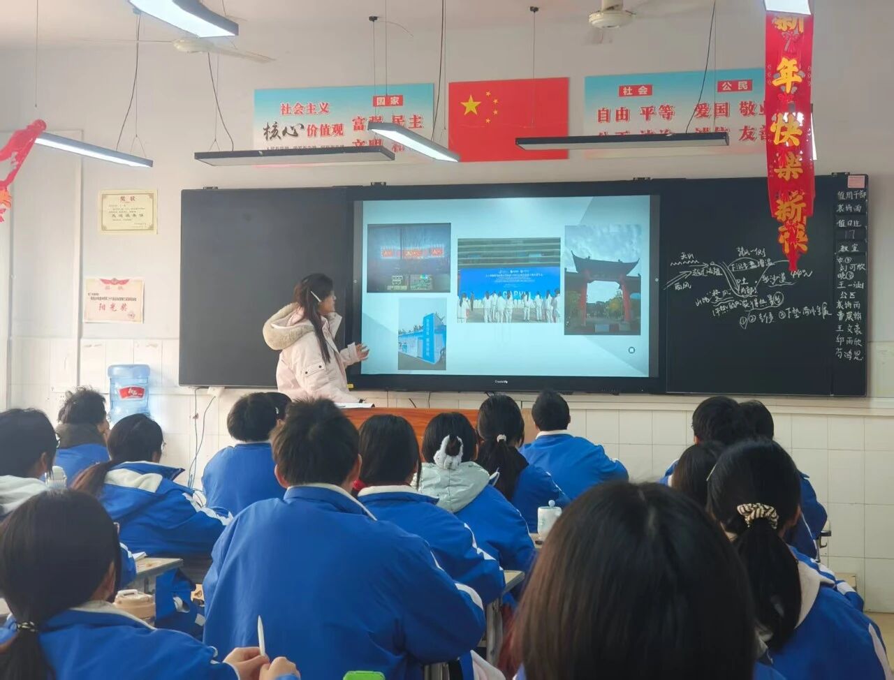 吉利学院 2025 级动画专业何城霖,投身感恩母校寒假实践,发挥专业优势精心筹备宣讲,他还结合自身高中经历,分享备考经验与成长感悟,为学弟学妹们送上实用的学习建议。在互动提问环节,他耐心解答大家关于择校、专业选择、大学生活等方面的疑惑,用真诚与专业搭建起高中与大学之间的沟通桥梁,充分展现了吉院学子的责任担当。