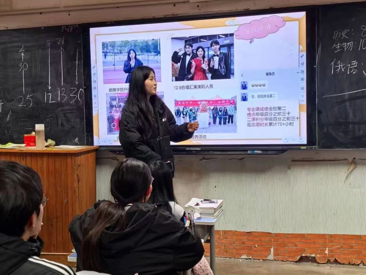 贺诗怡,来自吉利学院数字媒体学院。在今年寒假,她积极响应“情系吉利,感恩母校”实践活动号召,重返高中母校,为学弟学妹们带来了一场干货满满的交流分享会。她精心筹备素材、打磨宣讲方案,为学弟学妹介绍学校办学特色、专业优势,分享备考及大学成长经验,以青春之力搭建高校与高中的沟通桥梁,展现吉利学子的责任与风采。