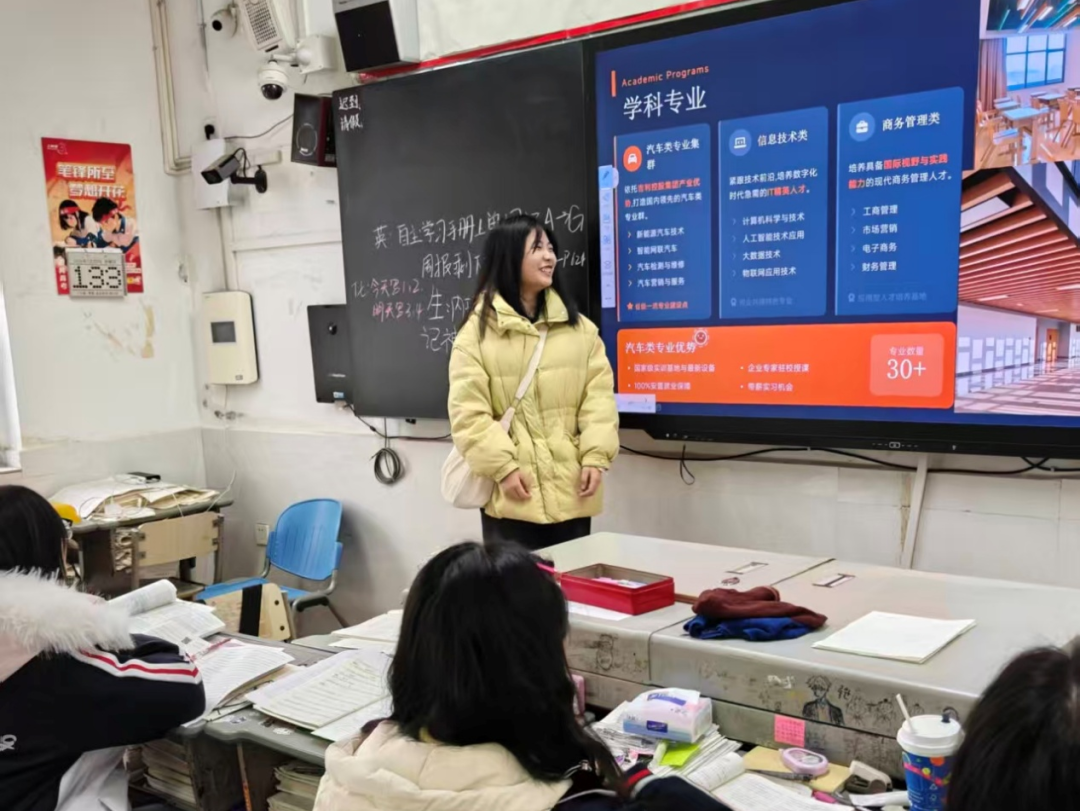 高三的学习压力大,很多学弟学妹在面对专业选择时,都容易陷入迷茫。我深知这种感受,所以这次回到母校,我只想把最真实、最实用的信息分享给大家。我详细介绍了吉利学院智能制造专业的课程安排、实训条件和行业优势,把专业学习、未来发展这些大家最关心的内容讲清楚,也耐心解答了同学们关于报考的各类问题。