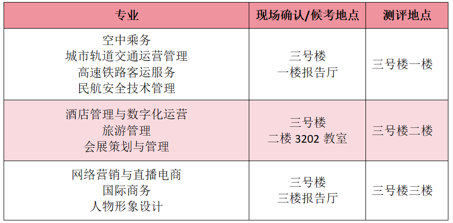 空中乘务、城市轨道交通运营管理、高速铁路客运服务等三个专业须参加体检(初检)。