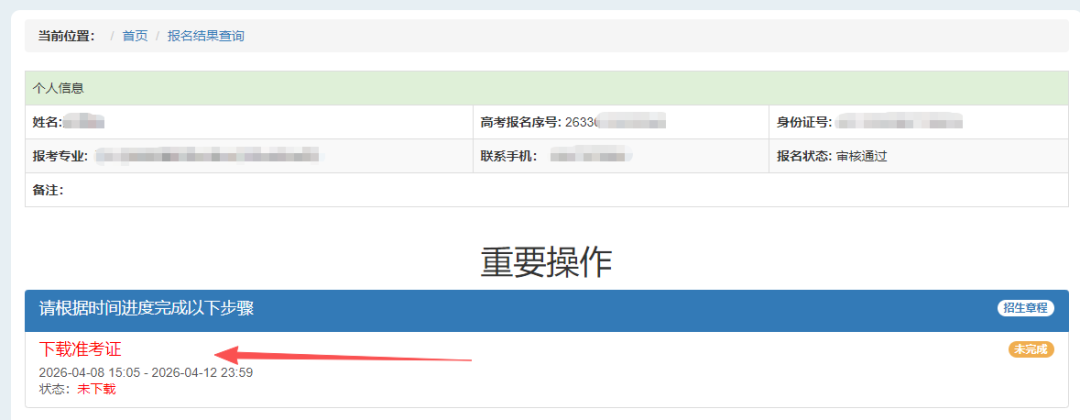 1.打印时间:2026年4月9日—4月12日(完成网上确认和缴纳报名考试费的考生可登录我校提前招生网打印)