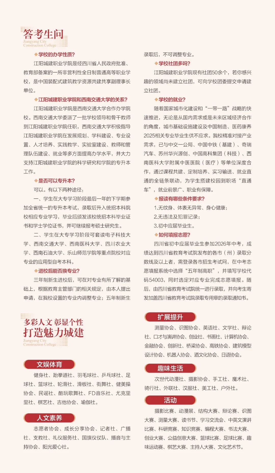 2026年江阳城建职业学院【五年一贯制】报考指南