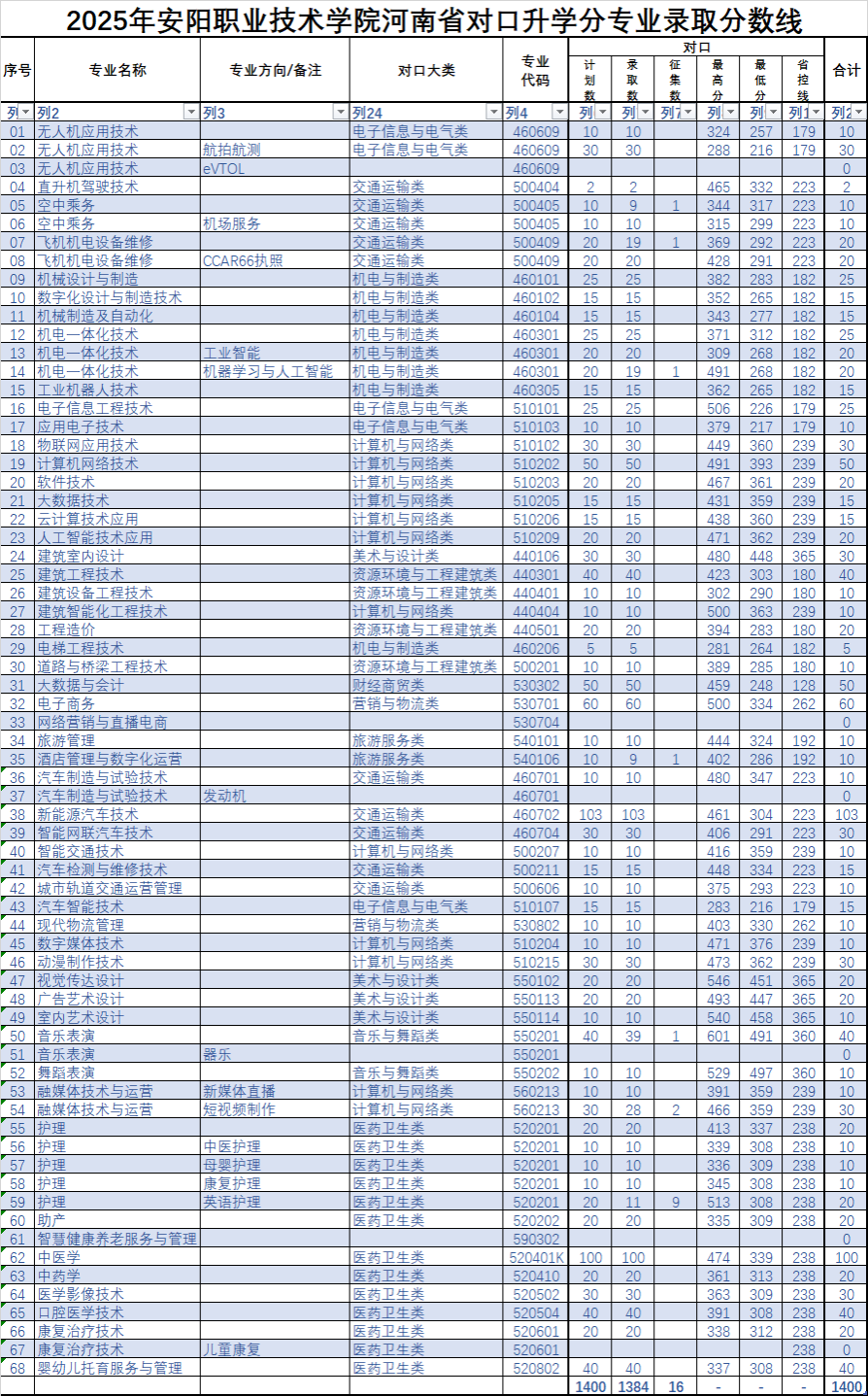 六、安阳职业技术学院2025年对口升学分专业录取分数线