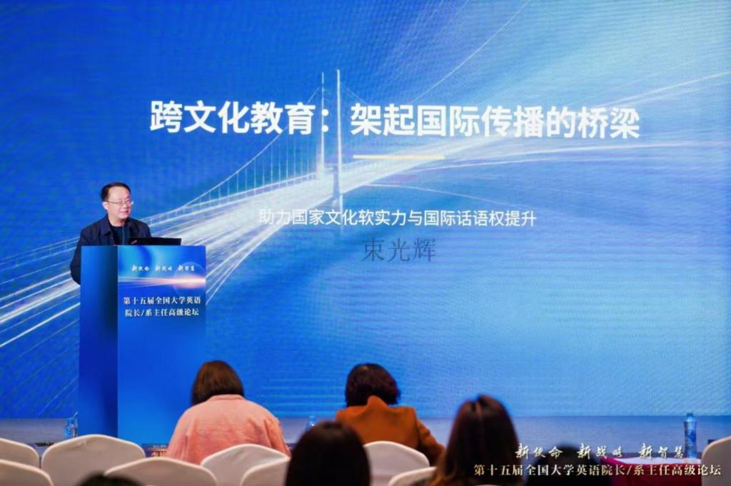 沧州交通学院外国语学院院长束光辉,副院长张丽应邀出席本次论坛。束光辉院长在分论坛四中围绕“跨文化教育助力国际传播力建设”主题发表主旨发言。发言中,束光辉院长紧扣新时代中国国际传播能力建设的核心需求,系统阐述了跨文化教育的顶层设计与实施策略,深入剖析了国际传播力的核心构成要素与实践路径。他结合近年来国内多所高校跨文化教育的典型案例,从课程体系构建、教学模式创新、实践平台搭建等维度,生动展示了通过跨文化教育打破文化壁垒、讲好中国故事、传播中国声音的有效模式,引发了与会院长、学者的广泛共鸣与深度探讨。
