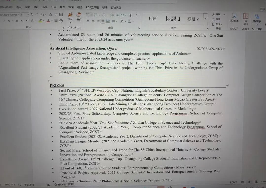 暑期便开始准备文书和CV(简历)