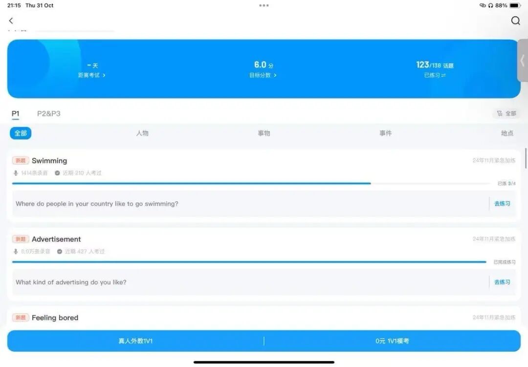 晚上则分配给口语练习和写作训练