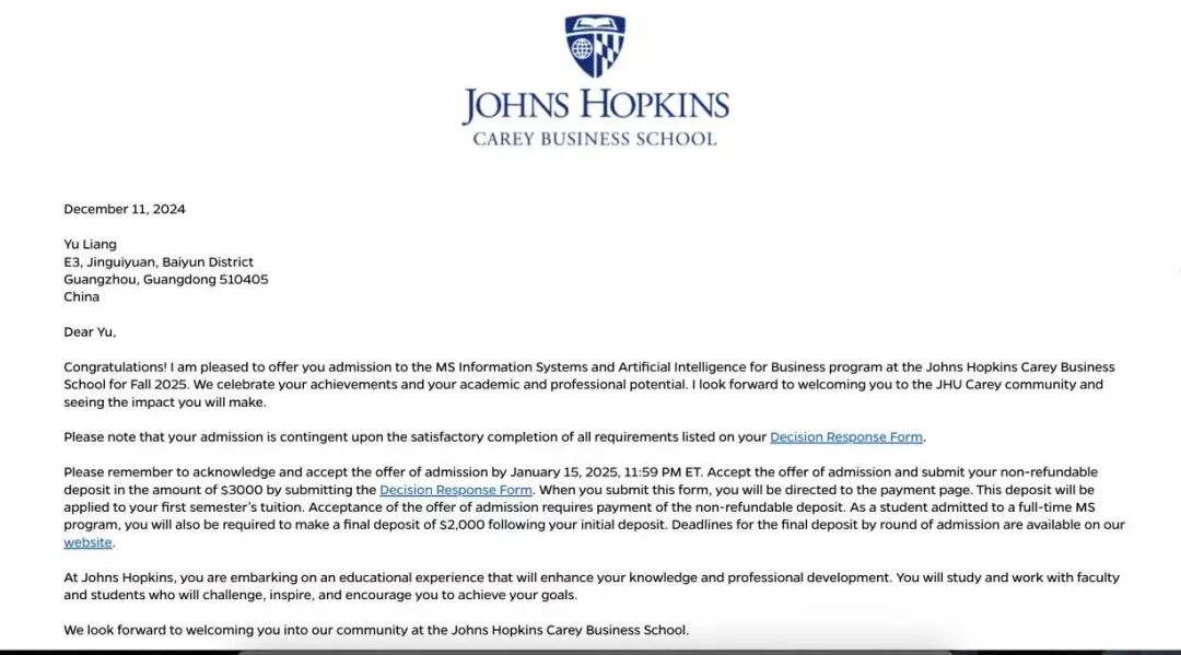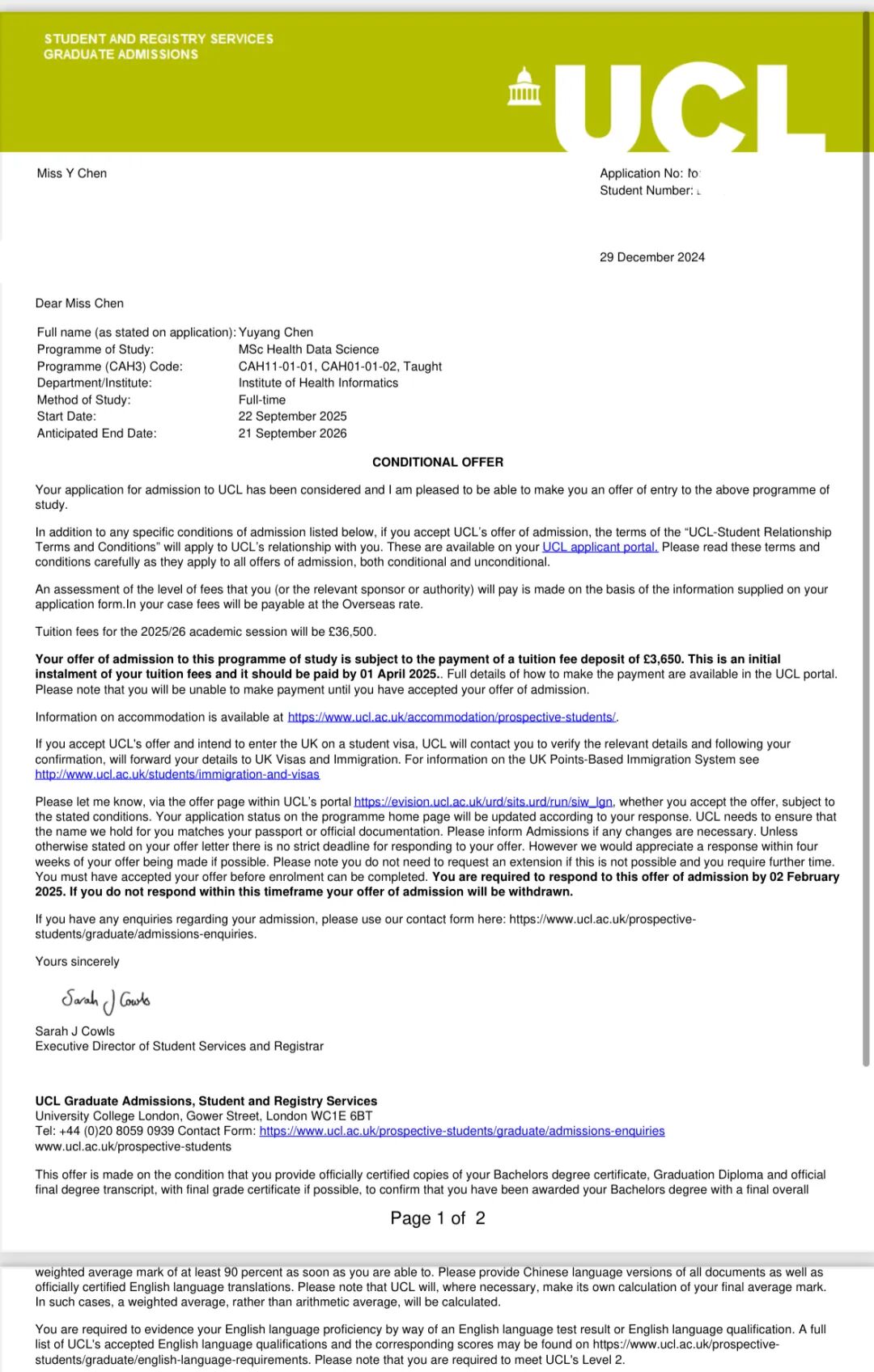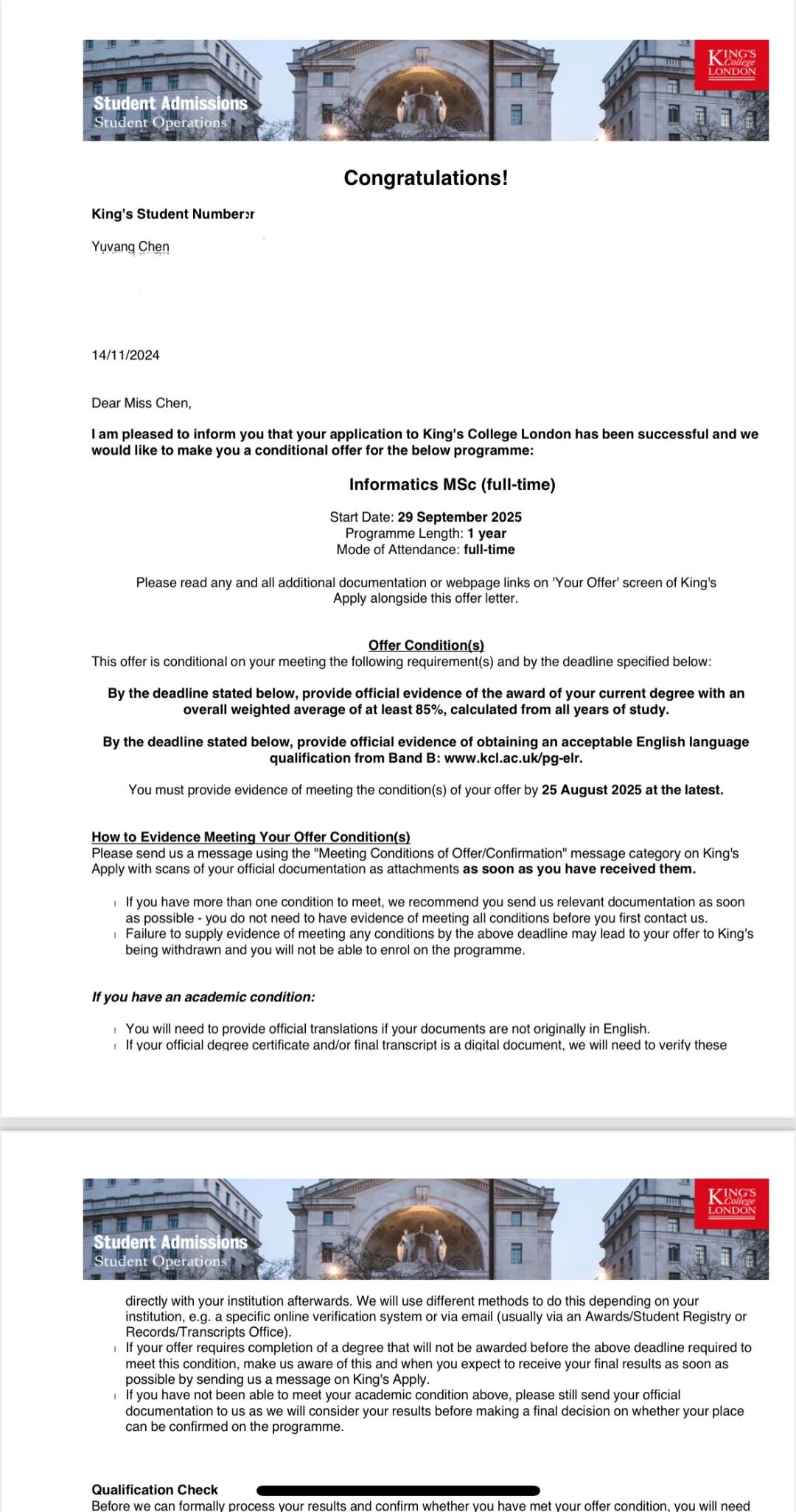 伦敦国王学院的录取Offer后