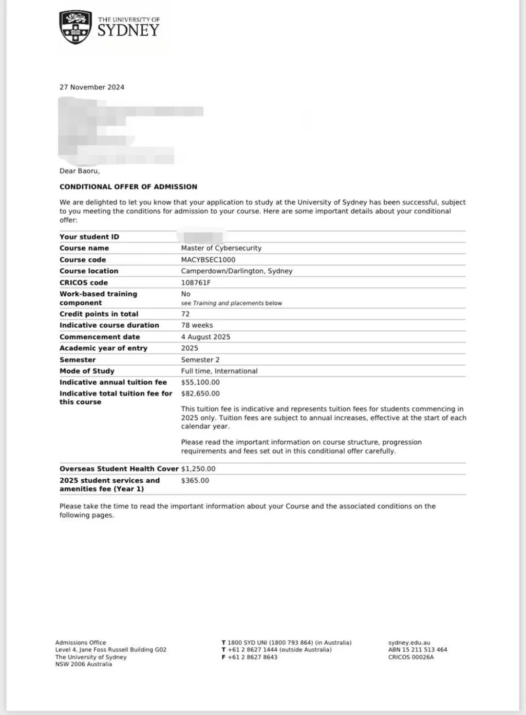 “选择悉尼大学是因为