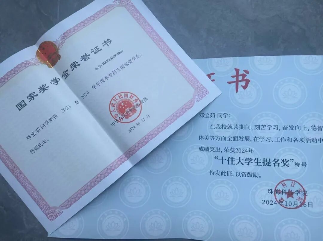▲邓宝茹获得的荣誉证书