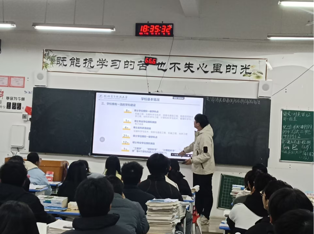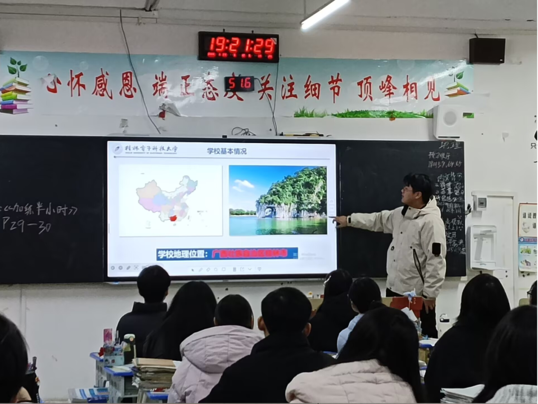 本次宣讲获得了较高的关注度:进行宣讲的高三班级学生对桂电的认知度较高,听到“桂电学姐宣讲”时现场呼声热烈;答疑环节中,学弟学妹主动提问的积极性较强,涉及专业、录取等核心报考问题,说明学生对桂电的报考意愿较明确。