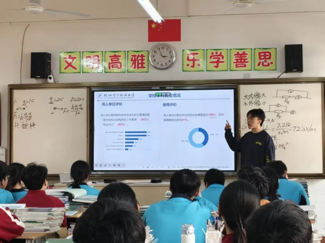 活动当天,团队成员准时抵达母校指定地点集合,随后听从母校老师调度,聆听宣讲注意事项。最后按预定时间依次进入两个班级开展宣讲,围绕学校概况、专业设置、奖助政策、学习生活、升学就业等方面进行全面分享,并现场解答疑问。