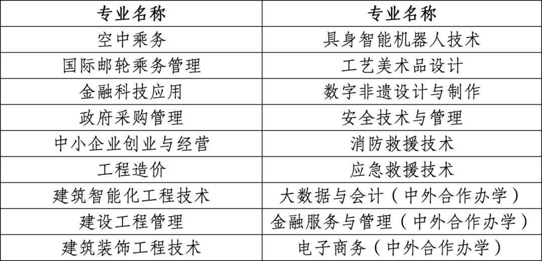 三校生递补预录取招生专业