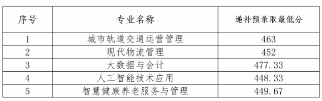 依据我校2026年分类考试招生章程,按照“分数优先,遵循志愿”的原则,各专业均按计划及一志愿录取。我校2026年分类招生递补预录取控制分数线(综合成绩)公布如下: