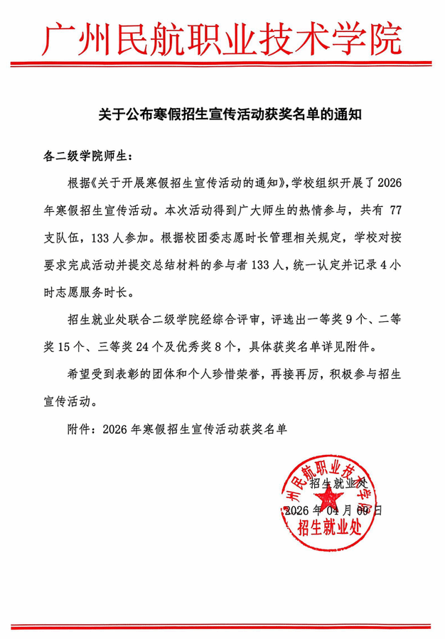 关于公布寒假招生宣传活动获奖名单的通知
