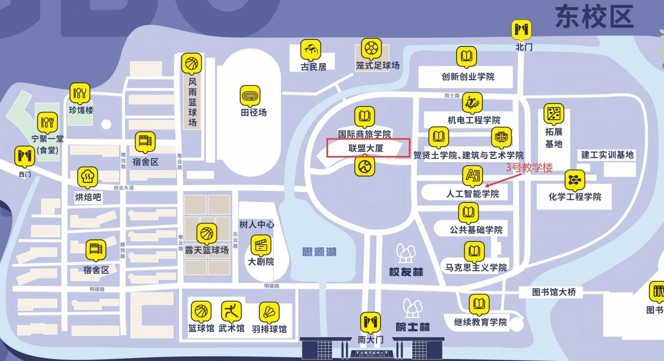 测试地点:宁波职业技术大学东校区(宁波经济技术开发区庐山东路388号)3号教学楼五层3530机房,地点详见下图指引。