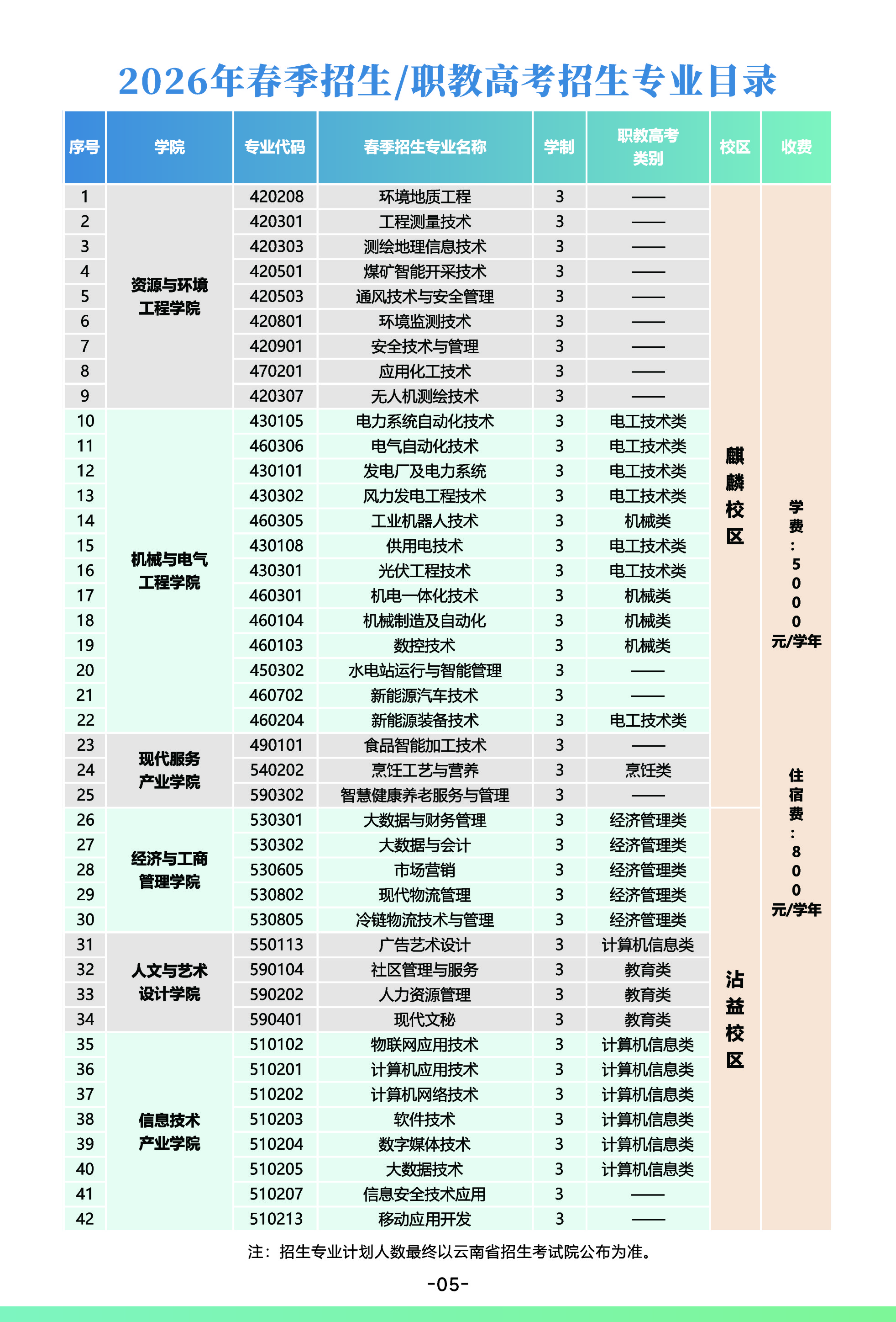 云南能源职业技术学院2026年春季招生/职教高考招生专业