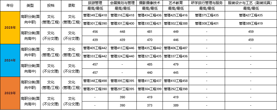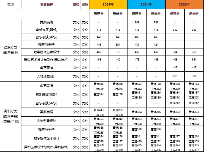我院近三年艺术类专业录取分数