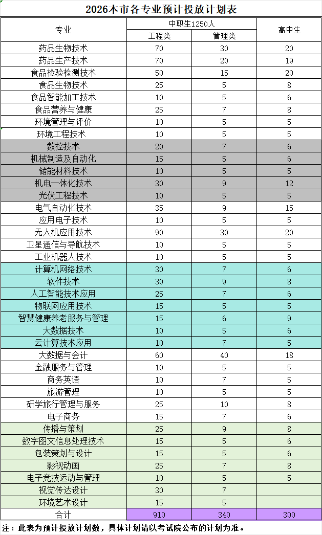 2026天津分类考试专业预计投放计划表