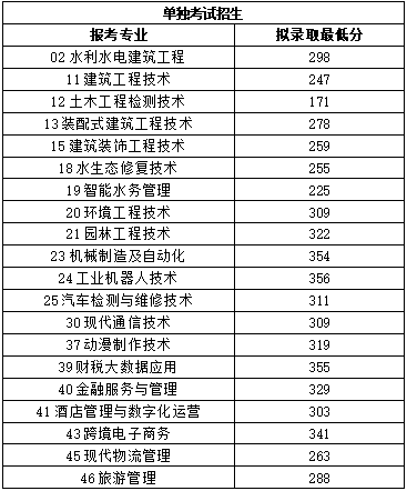 二、各专业拟录取最低分
