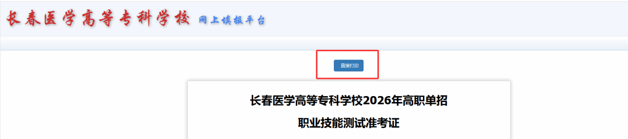 长春医学高等专科学校2026年高职单招职业技能测试准考证打印方法