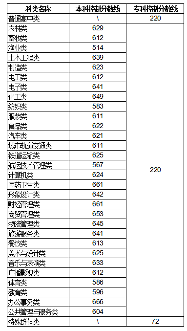 经研究决定,2026年福建省高职分类考试招生普通高中类、中职学校类和特殊群体类录取控制分数线具体如下: