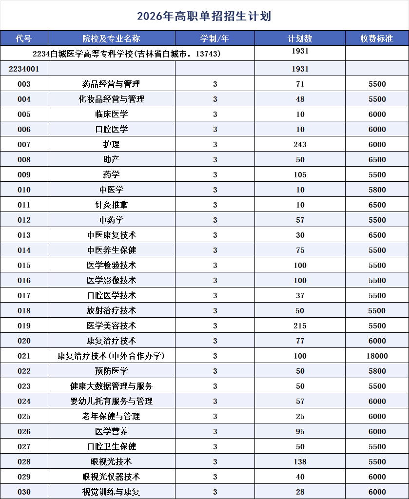 2026年高职单招报考指南白城医学高等专科学校