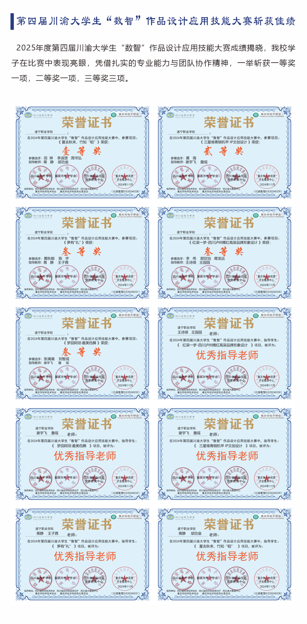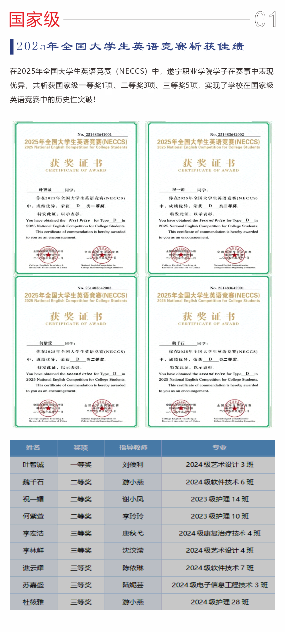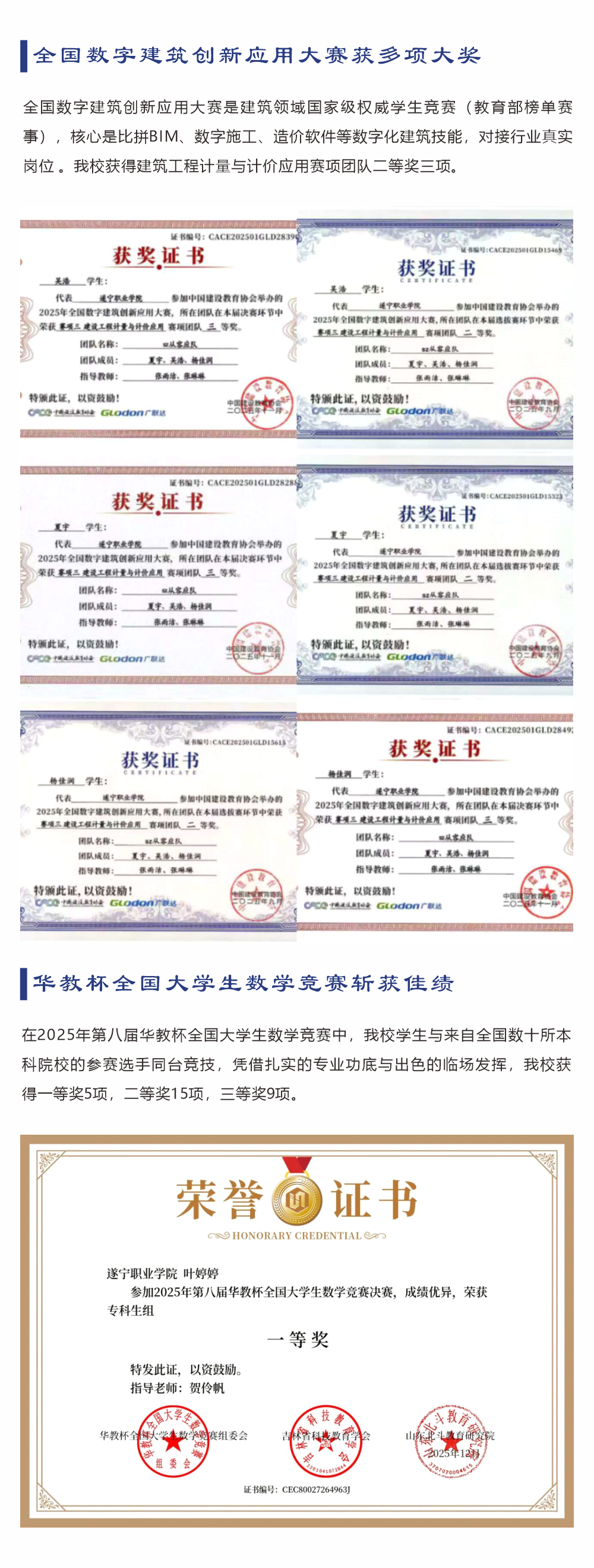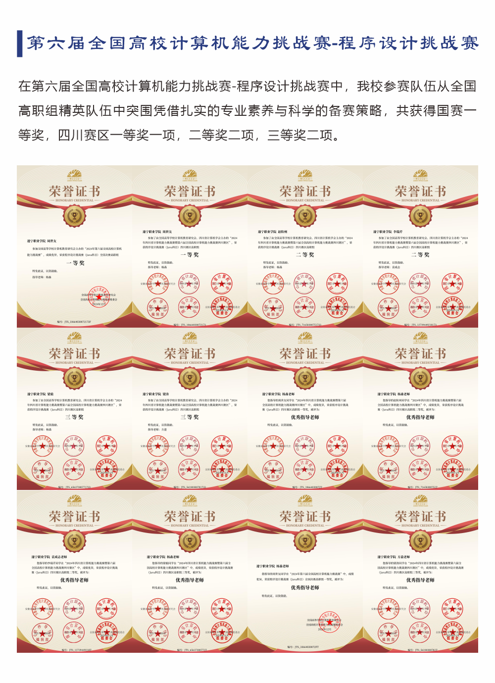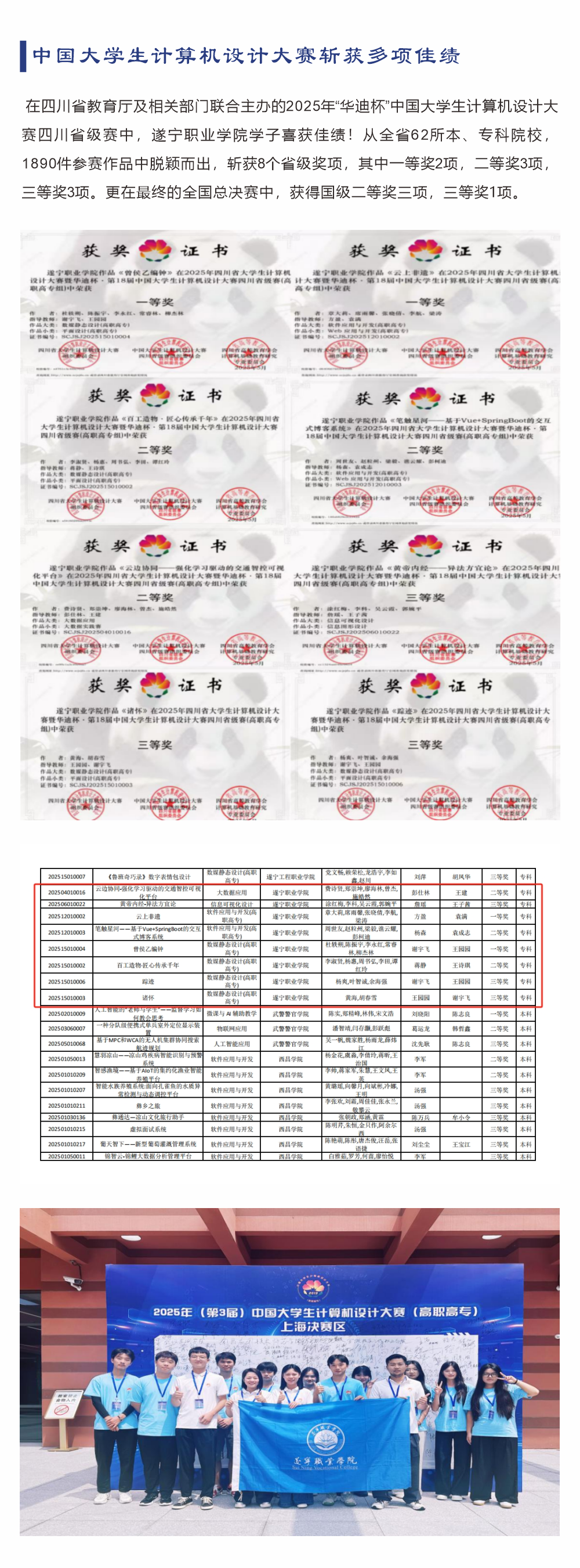 累计斩获国家级奖项126项,省级奖项171项