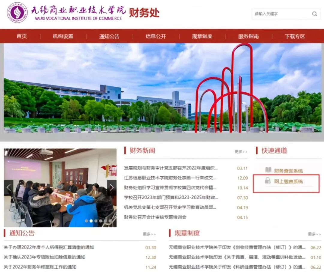 (1)浏览器进入学校财务处网页cw.wxic.edu.cn点击网上缴费系统。