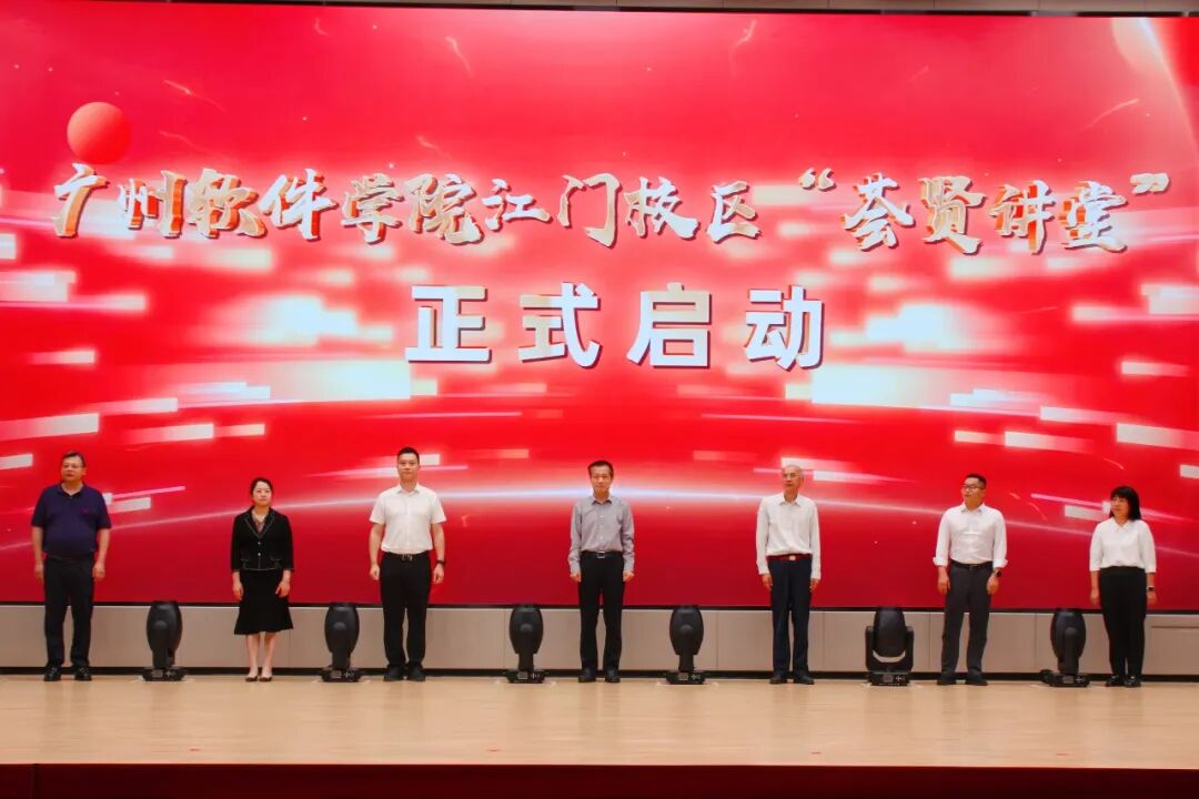 随后,与会嘉宾、领导共同上台,按动屏幕启动按键,广州软件学院江门校区“一站式”学生社区大思政育人“荟贤讲堂”正式启动。