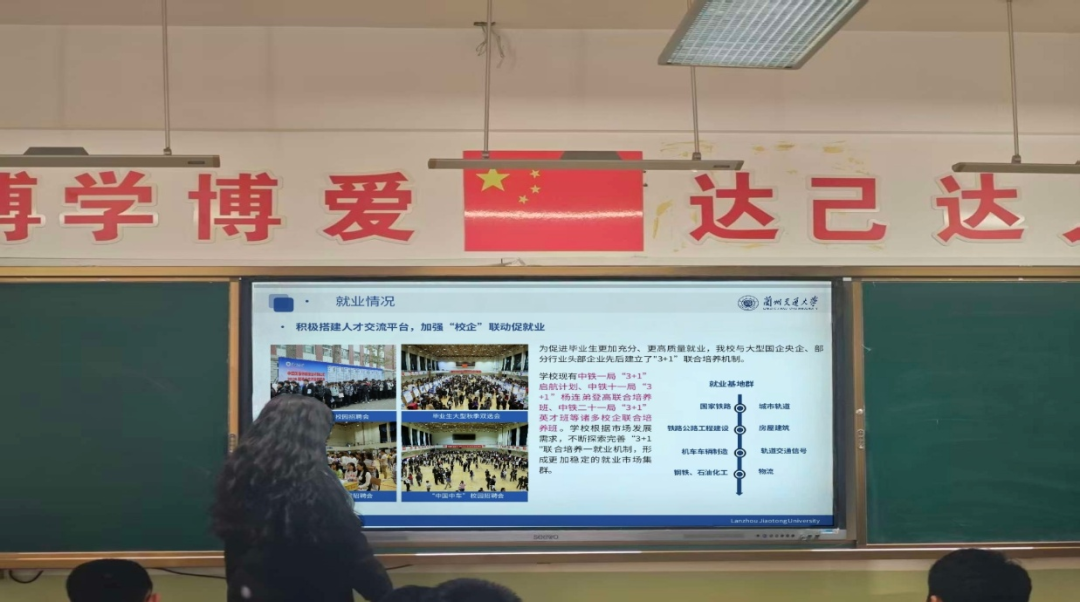 在活动正式开始前,我进行了充分的准备工作。我认真学习了学校下发的招生宣传材料,熟悉了兰州交通大学的校史校情、办学特色、优势专业、历年录取分数线及就业前景等信息,确保自己在宣讲时能够准确、全面地解答学弟学妹们的疑问。深入宣讲,搭建沟通桥梁。1月25日下午18:00,宣讲活动准时开始。我结合PPT,从我校的历史沿革讲起,重点介绍了学校在轨道交通领域的突出优势和特色专业,如交通运输、土木工程、车辆工程等。接着,我分享了自己在大学的学习和生活体验,从图书馆的奋笔疾书到社团活动的丰富多彩,从宿舍的温馨到食堂的美味,力求展现一个真实、立体、有温度的大学生活。在互动问答环节,学弟学妹们踊跃提问,问题涉及录取分数线、专业选择、就业方向、校园环境等方方面面,我都耐心地一一解答。