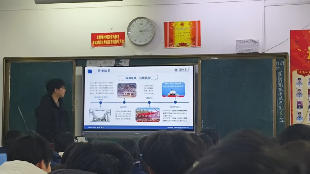 这次活动除了是对兰交大的宣传,也是对我们师出同门的学弟学妹们进行高中最后的冲刺进行排疑解惑。在这最后紧张高压的环境中,我们都希望我们对兰交大的介绍能够在我们的学弟学妹们心中能成为他们努力奋斗的动力,也希望他们能够收获更好的未来。