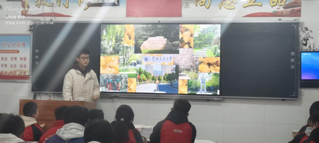 寒假期间,我回到高中母校,为高三学弟学妹开展了兰州交通大学招生宣讲活动。再次站在熟悉的教室,面对正在为高考努力的同学们,我既感到亲切,也多了一份责任。我主要围绕兰交大的招生政策、专业特色、学习生活和就业发展等大家最关心的内容展开。我向同学们介绍了学校的办学历史与优势,轨道交通特色,在交通运输、土木工程、自动化、电气工程等多个专业领域突出实力等。在招生方面,我向大家说明了学校在各省的招生情况、专业选科要求以及招生类型,让同学们对报考方向有更清晰的认识。同时,我也介绍了学校的特色班级和培养模式,帮助大家了解不同专业的学习内容和发展方向。 通过这次招生宣讲,我不仅锻炼了表达和沟通能力,也更加深刻地感受到作为兰交大学子的自豪。能够把学校真实的情况传递给学弟学妹,为他们提供有用的报考信息,我觉得非常有意义。未来我会继续努力学习,提升自己,不辜负学校的培养。同时也希望更多努力的学弟学妹,能够明确目标、认真备考,考上理想的大学,开启属于自己的崭新人生。