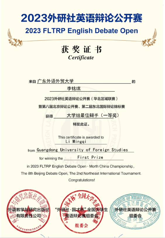 广外星力量 | 翻译专业:黄曦——是辩场上的“最佳辩手”,也是学术路上的深耕者