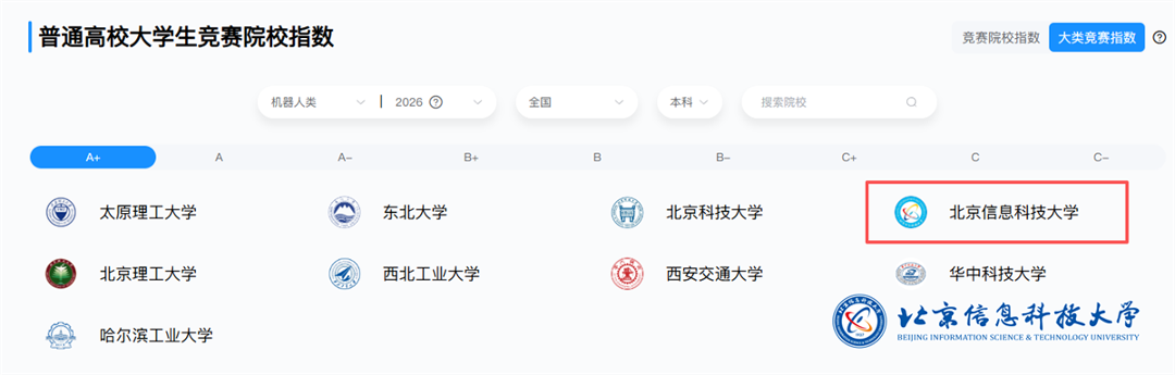 近日,在第五届高校大学生竞赛与创新人才培养会议上,高校教师教学发展研究国家级虚拟教研室联合中国自动化学会等权威机构正式发布了第7轮“普通高校大学生机器人类竞赛指数”(本科,2026版)。自2019年首轮指数发布以来,学校连续7次获评最高评级A+,稳居全国TOP1%。
