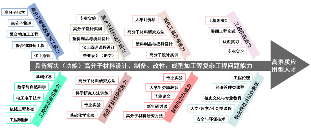 立足北京、面向全国,聚焦化工新材料行业产业需求,培养能够在高分子材料特别是功能高分子材料的设计、合成、改性、成型加工及应用等领域从事工艺设计、产品研发、生产管理、技术服务等方面工作,具备解决工程实践问题的能力、交流沟通与团队协作能力以及创新意识、绿色低碳意识与社会责任感,具备可持续发展的能力,适应高分子材料及相关领域需要的德智体美劳全面发展的应用型工程技术人才。