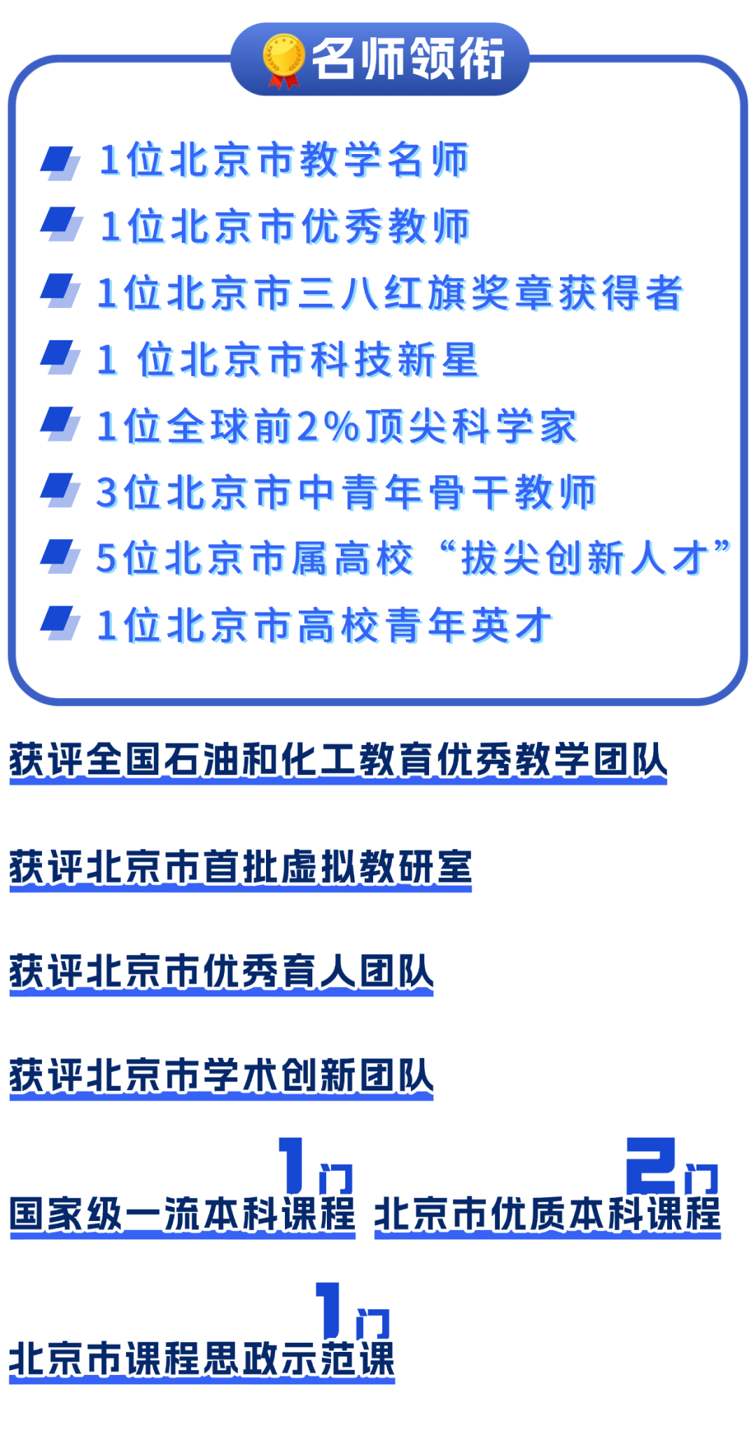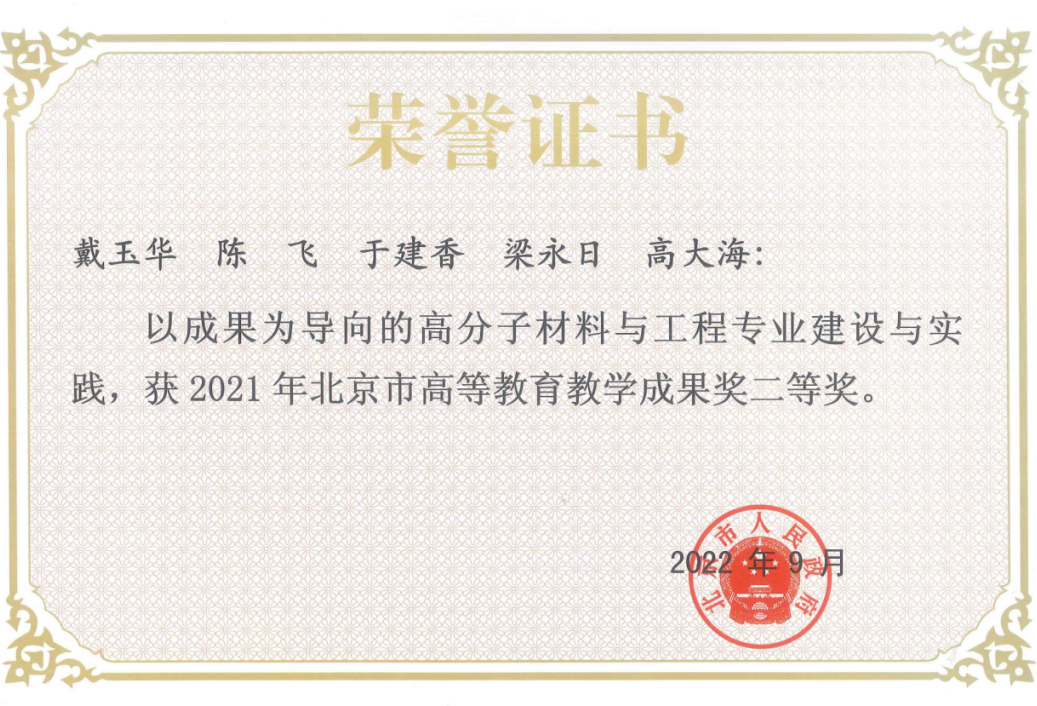 依托特种弹性体复合材料北京市重点实验室、材料学北京市重点建设学科,以及材料科学与工程一级学术硕士授权点、材料与化工类专业硕士授权点,搭建科教融合的创新平台及实践教学体系,夯实实践育人之本。组织学生全员参加“大学生研究训练计划”,及各类学科竞赛。近五年本专业学生获得各类奖项400余人次,其中省部级及以上奖项200余人次,获奖学生覆盖率达到35%。