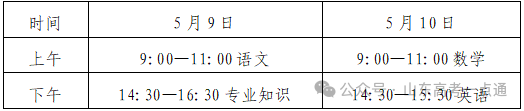 春季高考知识考试时间为5月9日至10日(见下表),具体考试招生政策详见后续发布的山东省2026年普通高等学校考试招生(春季高考)工作实施办法。