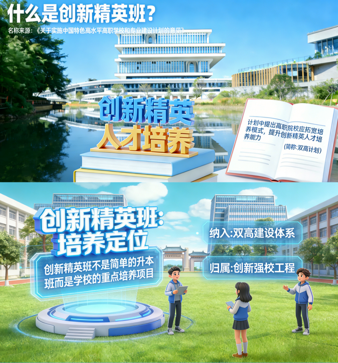 创新精英班不是简单的“升本培训班”,而是被纳入 “双高”建设体系、归属于 “创新强校工程” 的学校重点培养项目。
