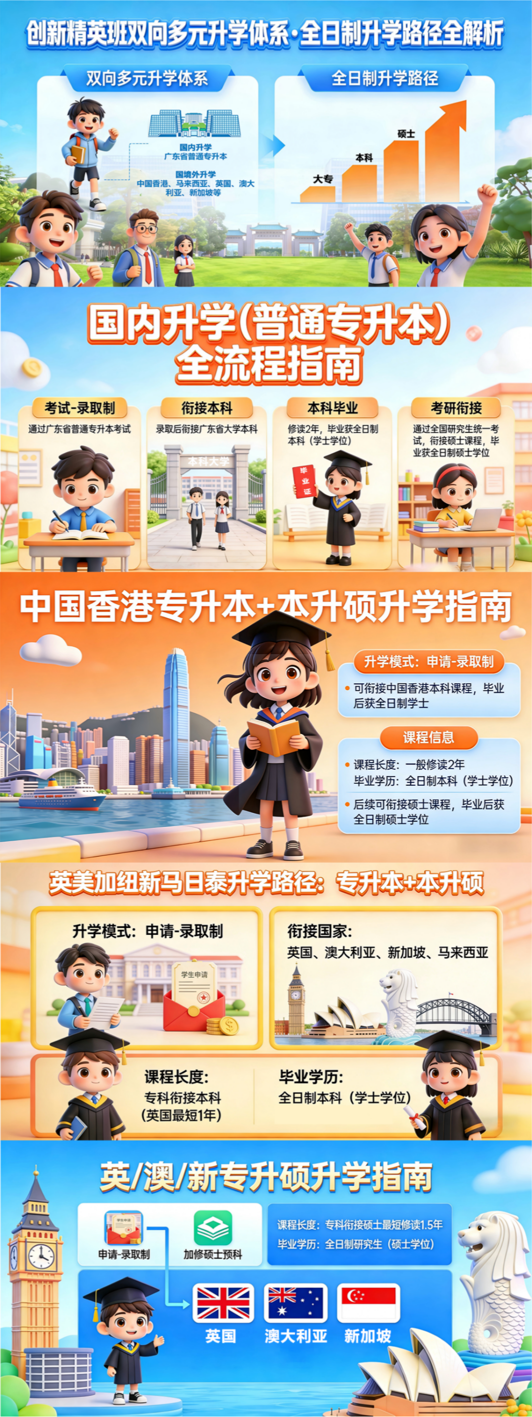 “创新精英班”最核心的优势,是构建了 “双向多元升学体系” 。你不必在入学时二选一,而是可以多条路同时准备。