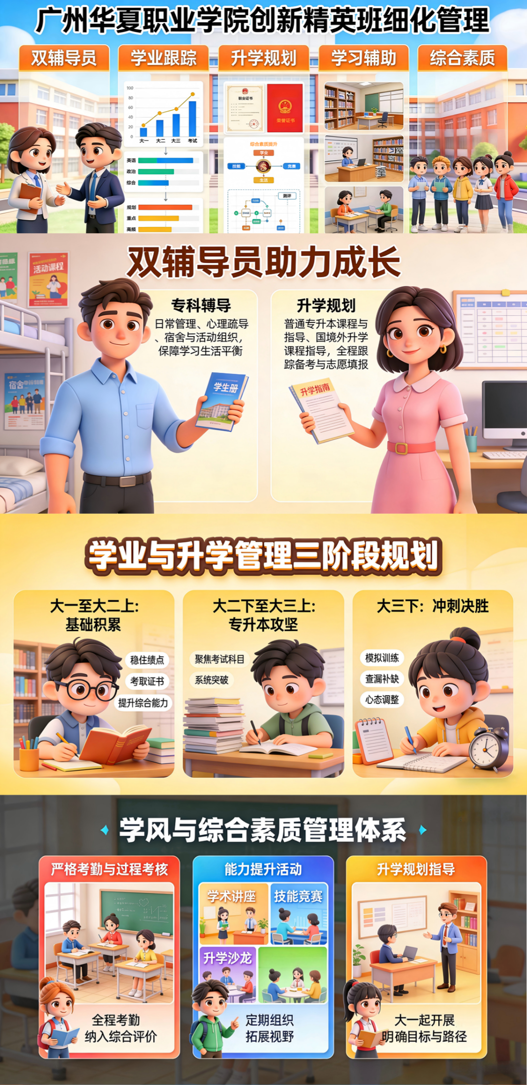 “创新精英班”实行双辅导员精细化管理,确保每一位学生都能在有序、良好的学习环境中成长。