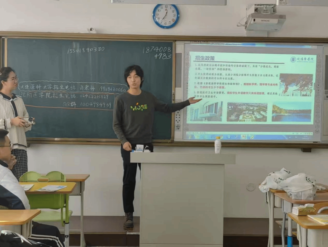 ②宣讲过程:宣讲中,我们细致介绍了沈阳医学院办学历史、专业特色、校园文化与育人精神;结合自身经历,分享了医学专业概况、大学生活初体验,还讲解了历年录取分数、实习就业等关键信息。大家积极互动,我们一对一答疑,交流氛围热烈。