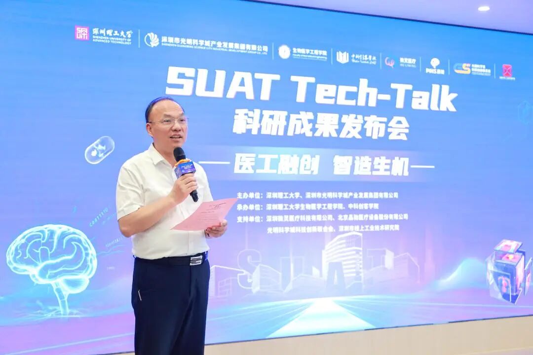 4月7日,深圳理工大学举办第七期SUAT Tech-Talk科研成果发布会。本期活动以“医工融创,智造生机”为主题,集中发布了5项兼具临床价值与产业转化潜力的科研成果,吸引企业家、投资人、行业专家、政府主管部门负责人、师生代表等80余人参与。